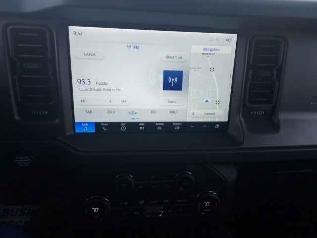 4-Wheel Disc Brakes, 4.46 Axle Ratio, 7 Speakers, ABS brakes, Air Conditioning, Alloy wheels, AM/FM radio: SiriusXM with 360L, AM/FM Stereo, Auto High-beam Headlights, Brake assist, Cloth Bucket Seats, Compass, Delay-off headlights, Driver door bin, Driver vanity mirror, Dual front impact airbags, Dual front side impact airbags, Electronic Stability Control, Emergency communication system: 911 Assist, Exterior Parking Camera Rear, Front anti-roll bar, Front Bucket Seats, Front Center Armrest, Front reading lights, Front wheel independent suspension, Fully automatic headlights, Heated door mirrors, Illuminated entry, Integrated roll-over protection, Internet access capable: FordPass Connect, Leather Shift Knob, Low tire pressure warning, Occupant sensing airbag, Outside temperature display, Overhead airbag, Overhead console, Panic alarm, Passenger door bin, Passenger vanity mirror, Power door mirrors, Power steering, Power windows, Radio data system, Remote Keyless Entry, Security system, SiriusXM w/360L, Speed control, Split folding rear seat, Steering wheel mounted audio controls, SYNC 4, Tachometer, Telescoping steering wheel, Tilt steering wheel, Traction control, Trip computer, Variably intermittent wipers, Wheels: 17 Carbonized Gray-Painted Aluminum.