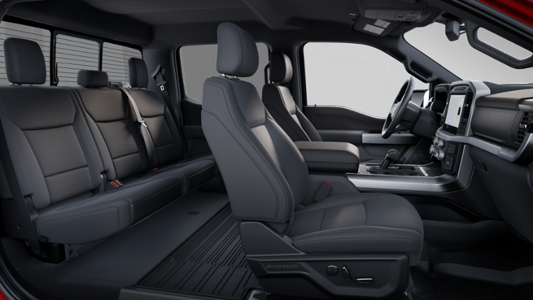 3.55 Axle Ratio, 360 Degree Camera, 4 Pickup Box Tie-Down Plates, 4-Wheel Disc Brakes, 400W Cab & Bed Outlets, 6 Speakers, 6 Angular Bright Anodized Step Bar, 6 Black Running Boards, ABS brakes, Adaptive Cruise Control w/Stop & Go, Air Conditioning, Alloy wheels, AM/FM radio: SiriusXM with 360L, Auto High-beam Headlights, Auto-Dimming Rear-View Mirror, Bed Utility Package, Black Exterior Badging, Black Grille, Black Painted Grille w/Chrome Center Bar, Body-Color Front & Rear Bumpers, Brake assist, Bumpers: chrome, Chrome Door & Tailgate Handles, Chrome Single-Tip Exhaust, Chrome wheels, Cloth 40/20/40 Front Seat, Cloth 40/Console/40 Front Seats, Compass, Connected Navigation, Dark Interior Appliques, Delay-off headlights, Driver door bin, Driver State Detection, Driver vanity mirror, Dual front impact airbags, Dual front side impact airbags, Dual-Zone Electronic Automatic Temperature Control, Electronic Stability Control, Emergency communication system: SYNC 4 911 Assist, Equipment Group 302A Mid, Evasive Steering Assist, Floor Shifter, Ford Co-Pilot360 Assist 2.0, Front anti-roll bar, Front Center Armrest, Front fog lights, Front Parking Sensors, Front reading lights, Front wheel independent suspension, Fully automatic headlights, Gray Box Side Decal, GVWR: 6,650 lbs Payload Package, Heated door mirrors, Heated Front Seats, Illuminated entry, Integrated Trailer Brake Controller, Intelligent Access w/Push Button Start, Internet access capable: FordPass Connect 5G, LED Box Lighting, Low tire pressure warning, Occupant sensing airbag, Outside temperature display, Overhead airbag, Overhead console, Panic alarm, Passenger door bin, Passenger vanity mirror, Power door mirrors, Power Glass Heated Sideview Mirrors, Power steering, Power windows, Power-Sliding Rear Window, Radio data system, Radio: AM/FM Stereo w/SiriusXM 360L, Rear Parking Sensors, Rear reading lights, Rear step bumper, Rear window defroster, Remote Keyless Entry, Remote Start System w/Remote Tailgate Release, Security system, Speed control, Split folding rear seat, Steering wheel mounted audio controls, SYNC 4 w/Enhanced Voice Recognition, Tachometer, Tailgate Step w/Tailgate Work Surface, Telescoping steering wheel, Tilt steering wheel, Tough Bed Spray-In Bedliner, Towing Technology, Traction control, Tray Style Floor Liner w/Carpet Mats, Trip computer, Unique Sport Cloth 40/Console/40 Front-Seats, Variably intermittent wipers, Voltmeter, Wheels: 18 Chrome-Like PVD, Wheels: 18 Gloss Black, Wrapped Steering Wheel, XLT Black Appearance Package.