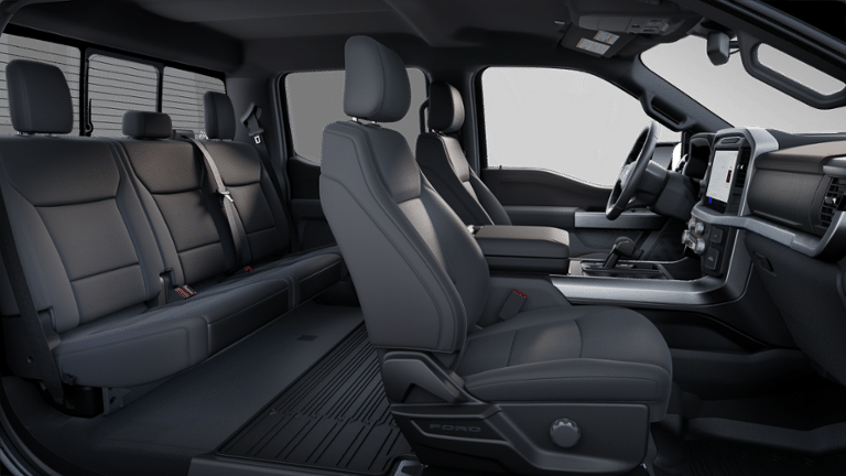 360 Degree Camera, 4-Wheel Disc Brakes, 400W Cab & Bed Outlets, 6 Speakers, 6 Angular Bright Anodized Step Bar, ABS brakes, Adaptive Cruise Control w/Stop & Go, Air Conditioning, Alloy wheels, AM/FM radio: SiriusXM with 360L, Auto High-beam Headlights, Auto-Dimming Rear-View Mirror, Black Painted Grille w/Chrome Center Bar, Brake assist, Bumpers: chrome, Chrome Door & Tailgate Handles, Chrome Single-Tip Exhaust, Chrome wheels, Cloth 40/20/40 Front Seat, Cloth 40/Console/40 Front Seats, Compass, Connected Navigation, Console Worksurface, Delay-off headlights, Driver door bin, Driver State Detection, Driver vanity mirror, Dual front impact airbags, Dual front side impact airbags, Dual-Zone Electronic Automatic Temperature Control, Electronic Stability Control, Emergency communication system: SYNC 4 911 Assist, Equipment Group 302A Mid, Evasive Steering Assist, Ford Co-Pilot360 Assist 2.0, Front anti-roll bar, Front Center Armrest, Front fog lights, Front Parking Sensors, Front reading lights, Front wheel independent suspension, Fully automatic headlights, Heated door mirrors, Heated Front Seats, Illuminated entry, Intelligent Access w/Push Button Start, Internet access capable: FordPass Connect 5G, Low tire pressure warning, Mobile Office Package, Occupant sensing airbag, Outside temperature display, Overhead airbag, Overhead console, Panic alarm, Partitioned Lockable Rear Storage, Passenger door bin, Passenger vanity mirror, Power door mirrors, Power Glass Heated Sideview Mirrors, Power steering, Power windows, Power-Sliding Rear Window, Radio data system, Radio: AM/FM Stereo w/SiriusXM 360L, Rear Parking Sensors, Rear reading lights, Rear step bumper, Rear window defroster, Remote Keyless Entry, Remote Start System w/Remote Tailgate Release, Security system, Speed control, Split folding rear seat, Steering wheel mounted audio controls, SYNC 4 w/Enhanced Voice Recognition, Tachometer, Telescoping steering wheel, Tilt steering wheel, Towing Technology, Traction control, Tray Style Floor Liner w/Carpet Mats, Trip computer, Variably intermittent wipers, Voltmeter, Wheels: 18 Chrome-Like PVD, Wrapped Steering Wheel.