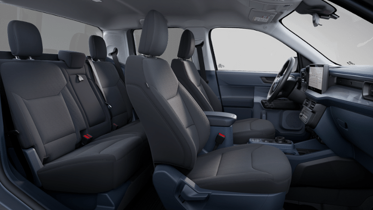 2.91 Axle Ratio, 4-Wheel Disc Brakes, 6 Speakers, ABS brakes, Air Conditioning, Alloy wheels, AM/FM radio: SiriusXM with 360L, Apple CarPlay/Android Auto, Auto High Beams, Auto High-beam Headlights, Automatic temperature control, Bed Tie Down Locking Rails w/2 Locking Brackets, Black Appearance Package, Black Grille, Black Interior Accents, Black Painted Mirrors, Brake assist, Bumpers: body-color, Compass, Delay-off headlights, Driver door bin, Driver vanity mirror, Dual front impact airbags, Dual front side impact airbags, Electronic Stability Control, Emergency communication system: SYNC 4 911 Assist, Equipment Group 302A, Exterior Parking Camera Rear, Four wheel independent suspension, Front & Back Black Edition Ford Logo, Front & Rear Floor Liners w/o Carpet Mats, Front anti-roll bar, Front Bucket Seats, Front Center Armrest, Front reading lights, Fully automatic headlights, Illuminated entry, Internet access capable: FordPass Connect 5G, Knee airbag, Low tire pressure warning, Occupant sensing airbag, Outside temperature display, Overhead airbag, Overhead console, Panic alarm, Passenger door bin, Passenger vanity mirror, Power door mirrors, Power steering, Power windows, Pre-Collision Assist w/Automatic Emergency Braking, Radio data system, Radio: AM/FM Stereo w/6 Speakers, Rear anti-roll bar, Rear seat center armrest, Rear step bumper, Rear-View Camera, Remote Keyless Entry, Security system, SiriusXM w/360L, Speed control, Speed-sensing steering, Steering wheel mounted audio controls, SYNC 4 w/Enhanced Voice Recognition, Telescoping steering wheel, Tilt steering wheel, Traction control, Trip computer, Unique Cloth Front Bucket Seats, Unique Cloth Front Bucket Seats w/Black Appearance, Wheels: 17 Carbonized Gray Painted Aluminum, Wheels: 19 Black Painted Aluminum.