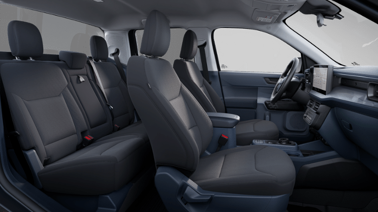 2.91 Axle Ratio, 4-Wheel Disc Brakes, 6 Speakers, ABS brakes, Air Conditioning, Alloy wheels, AM/FM radio: SiriusXM with 360L, Apple CarPlay/Android Auto, Auto High Beams, Auto High-beam Headlights, Automatic temperature control, Bed Tie Down Locking Rails w/2 Locking Brackets, Black Appearance Package, Black Grille, Black Interior Accents, Black Painted Mirrors, Brake assist, Bumpers: body-color, Compass, Delay-off headlights, Driver door bin, Driver vanity mirror, Dual front impact airbags, Dual front side impact airbags, Electronic Stability Control, Emergency communication system: SYNC 4 911 Assist, Equipment Group 302A, Exterior Parking Camera Rear, Four wheel independent suspension, Front & Back Black Edition Ford Logo, Front & Rear Floor Liners w/o Carpet Mats, Front anti-roll bar, Front Bucket Seats, Front Center Armrest, Front reading lights, Fully automatic headlights, Illuminated entry, Internet access capable: FordPass Connect 5G, Knee airbag, Low tire pressure warning, Occupant sensing airbag, Outside temperature display, Overhead airbag, Overhead console, Panic alarm, Passenger door bin, Passenger vanity mirror, Power door mirrors, Power steering, Power windows, Pre-Collision Assist w/Automatic Emergency Braking, Radio data system, Radio: AM/FM Stereo w/6 Speakers, Rear anti-roll bar, Rear seat center armrest, Rear step bumper, Rear-View Camera, Remote Keyless Entry, Security system, SiriusXM w/360L, Speed control, Speed-sensing steering, Steering wheel mounted audio controls, SYNC 4 w/Enhanced Voice Recognition, Telescoping steering wheel, Tilt steering wheel, Traction control, Trip computer, Unique Cloth Front Bucket Seats, Unique Cloth Front Bucket Seats w/Black Appearance, Wheels: 17 Carbonized Gray Painted Aluminum, Wheels: 19 Black Painted Aluminum.
