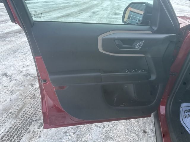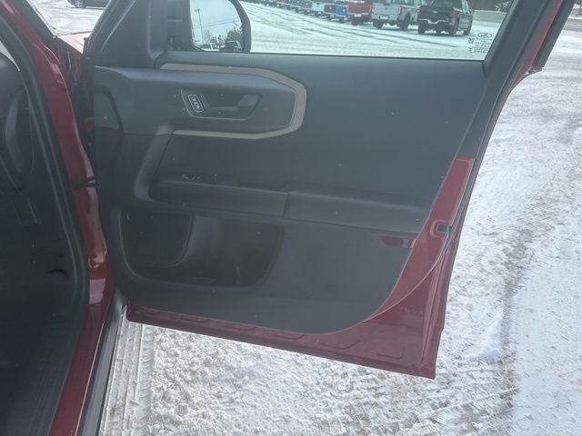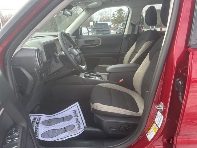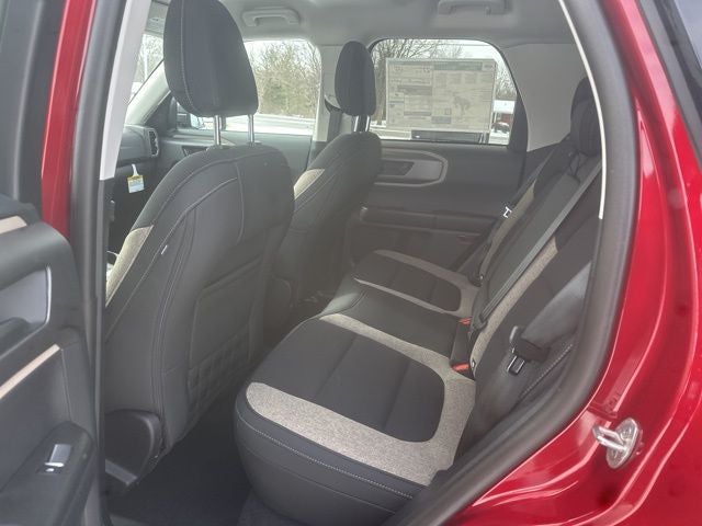 4-Wheel Disc Brakes, 6 Speakers, ABS brakes, Air Conditioning, Alloy wheels, AM/FM radio: SiriusXM with 360L, AM/FM Stereo, Apple CarPlay/Android Auto, Auto High-beam Headlights, Automatic temperature control, Brake assist, Cloth with Easy-to-Clean Front Bucket Seats, Compass, Convenience Package, Delay-off headlights, Driver door bin, Driver vanity mirror, Dual front impact airbags, Dual front side impact airbags, Electronic Stability Control, Emergency communication system: SYNC 4 911 Assist, Equipment Group 200A Standard Package, Exterior Parking Camera Rear, Ford Connectivity Package (1-Year Included), Four wheel independent suspension, Front anti-roll bar, Front Bucket Seats, Front Center Armrest, Front Driver/Passenger Seat Back Map Pockets, Front reading lights, Fully automatic headlights, Heated 8-Way Power Driver's Seat, Heated door mirrors, Illuminated entry, Internet access capable: 5G Modem - Ford Connectivity Package, Knee airbag, LED Fog Lamps, Liftgate with Black BRONCO SPORT Lettering, Low tire pressure warning, Occupant sensing airbag, Outside temperature display, Overhead airbag, Overhead console, Panic alarm, Passenger door bin, Passenger vanity mirror, Power door mirrors, Power steering, Power windows, Premium Wrapped Steering Wheel, Radio data system, Rear anti-roll bar, Rear Parking Sensors, Rear reading lights, Rear seat center armrest, Rear window defroster, Rear window wiper, Remote Keyless Entry, Security system, SiriusXM with 360L, Speed control, Speed-sensing steering, Speed-Sensitive Wipers, Split folding rear seat, Steering wheel mounted audio controls, SYNC 4 with Enhanced Voice Recognition, Tachometer, Telescoping steering wheel, Tilt steering wheel, Traction control, Trip computer, Variably intermittent wipers, Wheels: 17 Carbonized Gray Painted Aluminum.