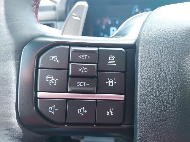 14 Speakers, 17 Cast Aluminum Wheels, 4-Wheel Disc Brakes, ABS brakes, Adjustable pedals, Air Conditioning, Alloy wheels, AM/FM radio: SiriusXM with 360L, Auto High-beam Headlights, Auto tilt-away steering wheel, Auto-dimming door mirrors, Auto-dimming Rear-View mirror, Automatic temperature control, Brake assist, Bumpers: body-color, Compass, Delay-off headlights, Driver door bin, Driver vanity mirror, Dual front impact airbags, Dual front side impact airbags, Electronic Locking with 4.10 Axle Ratio, Electronic Stability Control, Emergency communication system: SYNC 4 911 Assist, Ford Connectivity Package (1-Year Included), Front anti-roll bar, Front Bucket Seats, Front Center Armrest, Front dual zone A/C, Front fog lights, Front reading lights, Front wheel independent suspension, Fully automatic headlights, Garage door transmitter, Heads-Up Display, Heated door mirrors, Heated Front Seats, Heated rear seats, Heated steering wheel, Illuminated entry, Internet access capable: 5G Modem - Ford Connectivity Package, Lane Departure Warning System, Leather steering wheel, Leather Trimmed Seats, Low tire pressure warning, Memory seat, Navigation system: Connected Navigation, Occupant sensing airbag, Outside temperature display, Overhead airbag, Overhead console, Panic alarm, Passenger door bin, Passenger vanity mirror, Pedal memory, Power door mirrors, Power driver seat, Power passenger seat, Power steering, Power windows, Radio data system, Radio: B&O Unleashed Sound System by Bang & Olufsen, Rain sensing wipers, Rear reading lights, Rear step bumper, Rear window defroster, Remote Keyless Entry, Security system, Speed control, Speed-sensing steering, Split folding rear seat, Steering wheel memory, Steering wheel mounted audio controls, SYNC 4 with Enhanced Voice Recognition, Tachometer, Telescoping steering wheel, Tilt steering wheel, Traction control, Trip computer, Turn signal indicator mirrors, Variably intermittent wipers, Ventilated front seats.
