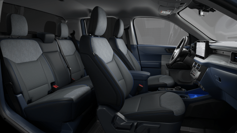 2.91 Axle Ratio, 4-Wheel Disc Brakes, 6 Speakers, ABS brakes, Air Conditioning, Alloy wheels, AM/FM radio: SiriusXM with 360L, Apple CarPlay/Android Auto, Auto High Beams, Auto High-beam Headlights, Automatic temperature control, Brake assist, Bumpers: body-color, Compass, Delay-off headlights, Driver door bin, Driver vanity mirror, Dual front impact airbags, Dual front side impact airbags, Electronic Stability Control, Emergency communication system: SYNC 4 911 Assist, Exterior Parking Camera Rear, Ford Connectivity Package (1-Year Included), Four wheel independent suspension, Front anti-roll bar, Front Bucket Seats, Front Center Armrest, Front reading lights, Fully automatic headlights, Illuminated entry, Internet access capable: 5G Modem - Ford Connectivity Package, Intersection Assist, Knee airbag, Lane-Keeping System, Low tire pressure warning, Occupant sensing airbag, Outside temperature display, Overhead airbag, Overhead console, Panic alarm, Passenger door bin, Passenger vanity mirror, Power door mirrors, Power steering, Power windows, Pre-Collision Assist with Automatic Emergency Braking, Radio data system, Radio: AM/FM Stereo with 6 Speakers, Rear anti-roll bar, Rear seat center armrest, Rear step bumper, Rear-View Camera, Remote Keyless Entry, Security system, SiriusXM with 360L, Speed control, Speed-sensing steering, Steering wheel mounted audio controls, SYNC 4 with Enhanced Voice Recognition, Telescoping steering wheel, Tilt steering wheel, Traction control, Trip computer, Unique Cloth Front Bucket Seats, Wheels: 17 Carbonized Gray Painted Aluminum.